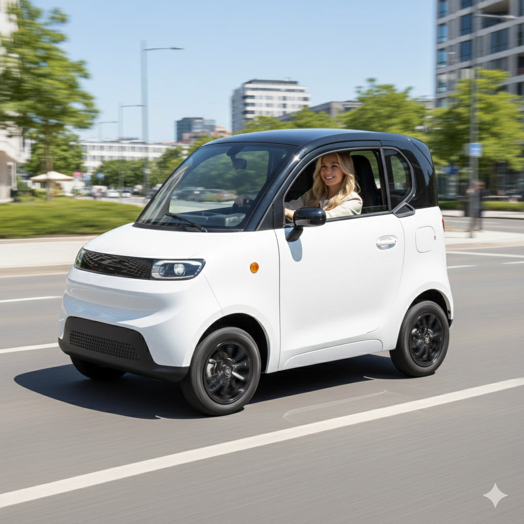 GRAND is a compact electric car designed for two passengers, classified as a light quadricycle. It can effortlessly achieve a top speed of 45 km/h, making it an ideal choice for urban transportation and daily commutes. The 7.68 kWh LiFePO4 lithium battery offers an impressive range of up to 110 km.